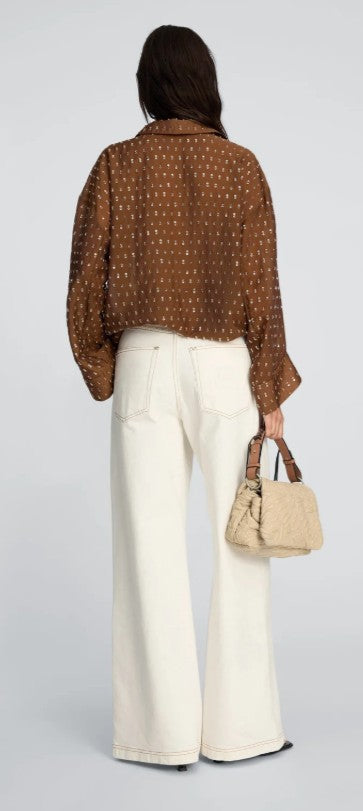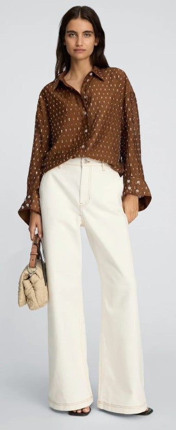 Skjorte med en oversize pasform og små, diskrete pailletdetaljer. Modellen har en klassisk krave, knaplukning foran samt lange ærmer med brede manchetter.