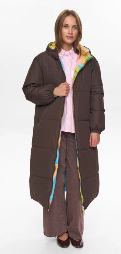 Superlækker vendbar lang jakke fra Nümph. Dunjakke som man ikke ser stor ud i.
