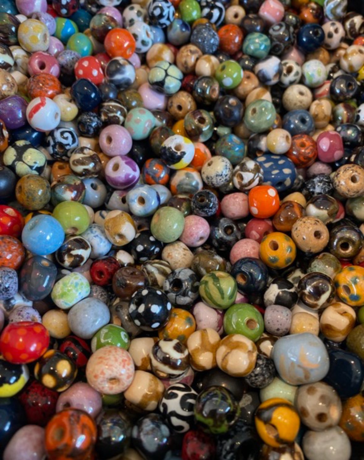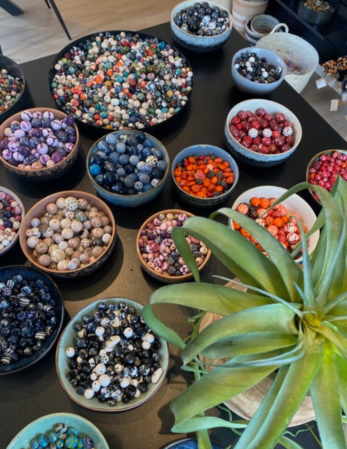 Heidi medbringer sin store smykkebar med perler i alverdens farver, former og udtryk. Hun fortæller også historien om de fine perler og smykker, som bliver håndlavet af kvinder på keramikværkstedet i Kenya.